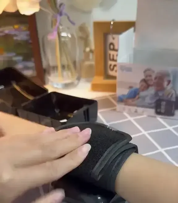 2️⃣ Wrap the cuff around your wrist, keeping it level with your heart.